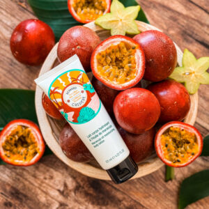 Le fruit de la Passion, également appelé maracuja ou grenadille jaune, est récolté sur une plante grimpante d’Amérique du Sud. Il est naturellement riche en antioxydants et acide linoléique qui aident à renforcer la fonction barrière de la peau.